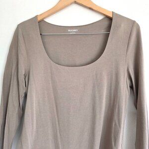 Old Navy Scoop Neck Bodysuit, Taupe Basic Long Sleeve T-Shirt, Casual Capsule