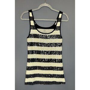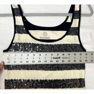 Old Navy Sequin Tank Top Womens Medium Navy White Stripe Scoop Neck Party