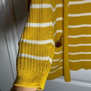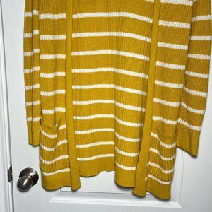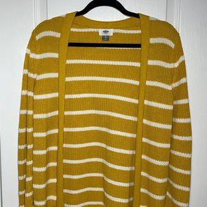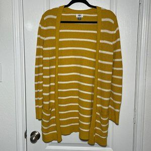 Old Navy Shaker Sweater Cardigan Women's Open Front Knit Mustard Striped XS