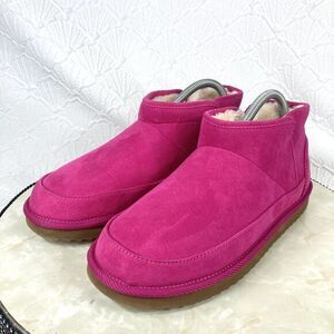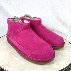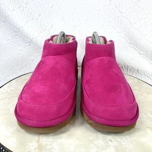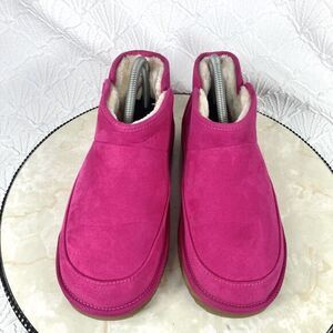 - Description: Old Navy Shearling Lined Winter Boots 6.5 Hot Pink Suede Pull-On Fur Snow Bootie