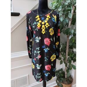 Old Navy Sheath Dress Women's Size Medium Black Floral Slit Sleeve Round Neck