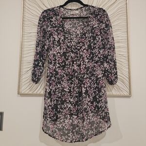 Old Navy Sheer Abstract Floral V Neck Maternity Babydoll Tunic Top Blouse Medium