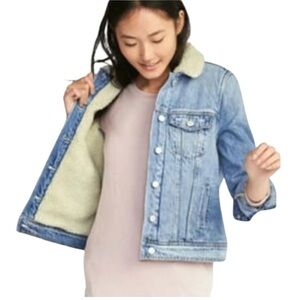 Old Navy Womens Sherpa Lined Trucker Jacket Size S Blue Light Wash Buttons Denim