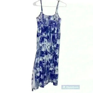 Old Navy Shirred Top Maxi Dress | Blue Tie Dye Comfy Summer Dress | Size Medium