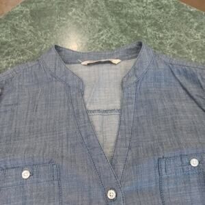 Old Navy Shirt Dress Chambray 100% Cotton Roll Tab sz M Pockets Western Coastal