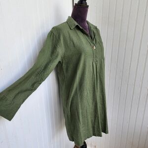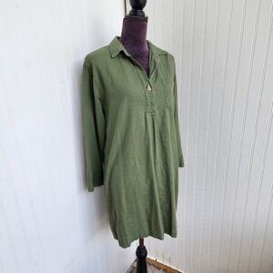 Old Navy Shirt Dress Womens Olive Green Linen Blend Collar Long Sleeve Dark Sz S