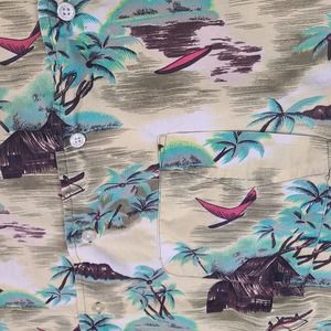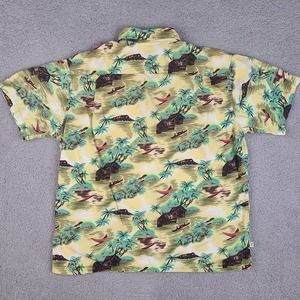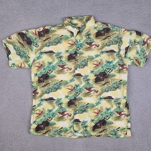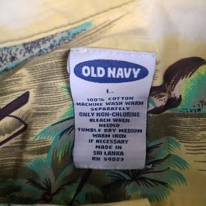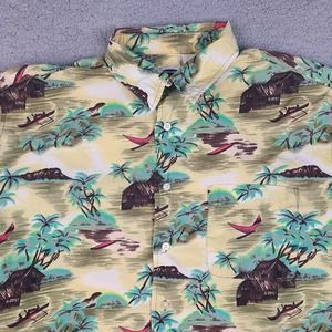 Old Navy Shirt Men's Large Yellow Hawaiian Floral Cotton Button Down Camp