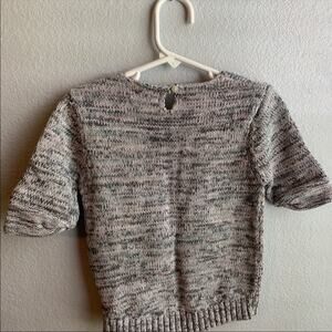 Cute toddler sweater. Gray w pink coloring running through it. Cap sleeve w button closure at back of neck. Pre-owner, great condition.
