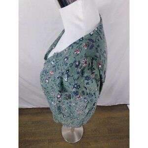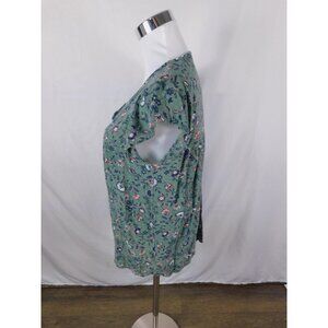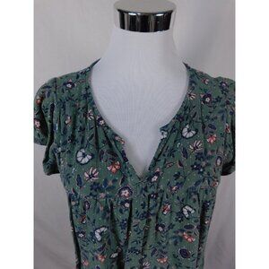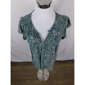 Old Navy Shirt Womens Large Green Floral Short Sleeve Split Neck Rayon Boho