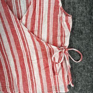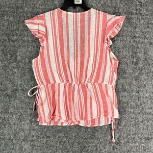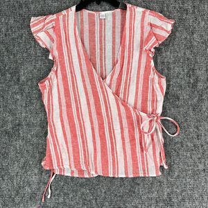 Old Navy Shirt Womens Large Red Wrap Chambray Basic Cotton Linen Striped Cropped