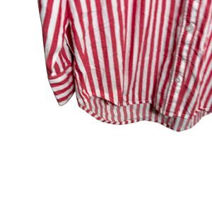 Old Navy Shirt Women's Medium Red Striped Button Up Collared Boyfriend Top