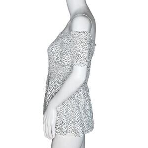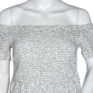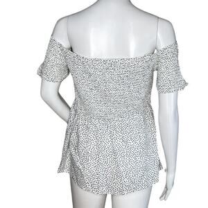 Old Navy Shirt Womens Medium White Polka Dots Off Shoulder Flowy Ruffle Casual