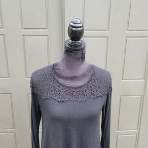 Old Navy Shirt Women's Size Medium Black Long Sleeve Round Neck Lace Side Slits