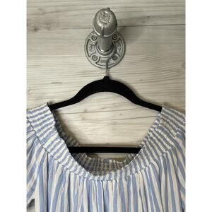 Old Navy Shirt Womens Small Blue White Striped Smocked Short Sleeve Rayon Boho