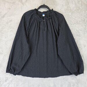 Old Navy Shirt Womens XL Black Textured Embroidered Long Sleeve Boho New Tag