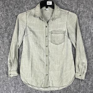 Old Navy Shirt Womens XS Gray Chambray Relaxed Button-Up Long-Sleeve Casual