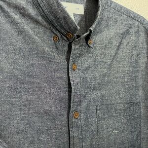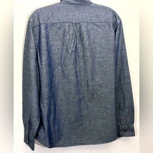 Old Navy Shirt XL Blue Linen & Cotton Blend Chambray Slim Fit Travel Outdoor