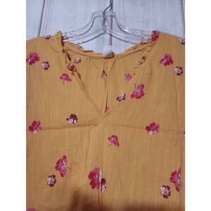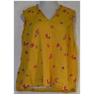 Old Navy Shirt Ladies Extra Large Gold Pink Floral Sleeveless Semi Sheer Light W