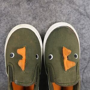 Used Old Navy Shoes Kids 8 Sneakers Dinosaur Slip On Canvas Toddler Green Orange Dino