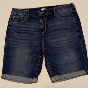 Old Navy Shorts Jean Mid Rise Beachy Bermuda Summer Stretch Factory Fade Dark Wash Blue Mom Shorts 14 Whiskers Cuffed Appearance is very nice