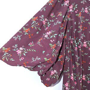 Old Navy | Short Puff Sleeve Plum Burgundy Floral Midi Dress | Size 3X