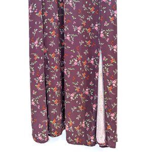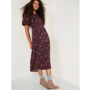 Old Navy | Short Puff Sleeve Plum Burgundy Floral Midi Dress