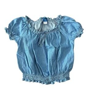 Old Navy Short Sleeve Crop Top with Elastic on Waist & Sleeve Light Denim XS