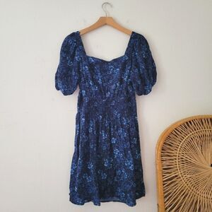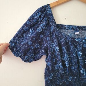 Old Navy Short Sleeve Smocked Waist Mini Dress Blue Floral Medium