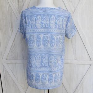 Tags short sleeve blue white top old navy women's medium basic spring summer pullover staple floral blouse top shirt light weekend travel vacation