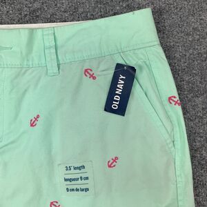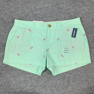 Old Navy Short Womens 4 Mint Embroidered Anchor Cotton Flat Front Low Rise Chino