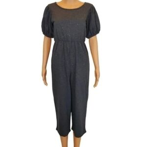 Elegant black jumpsuit with stylish puff sleeves. Perfect for any occasion. Comfortable and trendy.