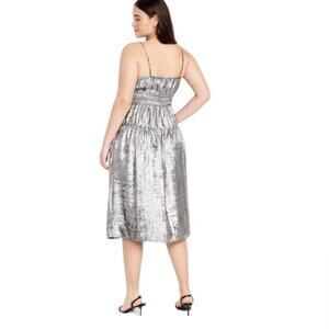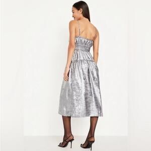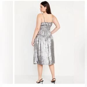 Old Navy Silver Metallic Waist Defined Cami Midi Dress