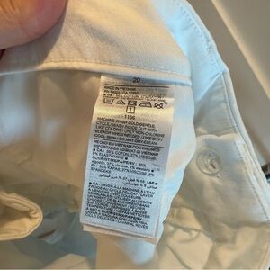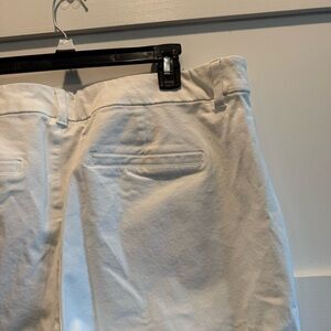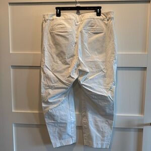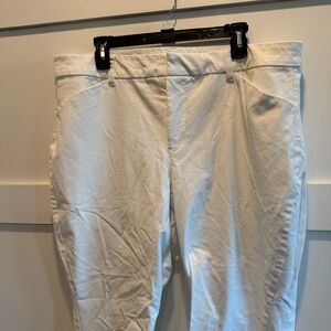 Stylish and versatile white pixie pants. Perfect for casual or formal wear. Comfortable fit. Great condition, no noticeable flaws. Old Navy brand, Size 20. Pixie style pants, pockets in the front. 55% cotton, 37% rayon/vicose, 8% spandex/elastane.