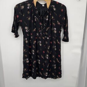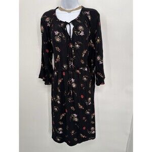 Old Navy Size 2X Black Floral Calico Cotton Blend Maxi Prairie Dress Pockets XXL