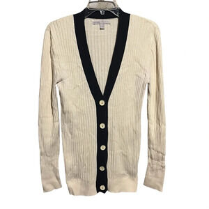 Old Navy Size L Beige Navy Grandpa Sweater V Neck Long Cardigan Ribbed Stretch