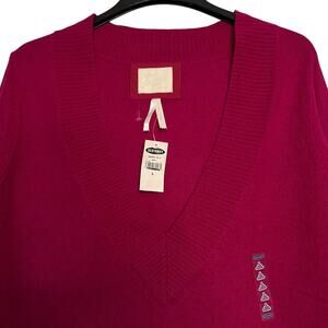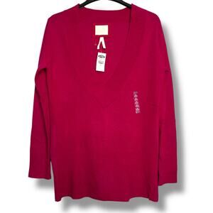 Old Navy Size Large Fuchsia Pink Deep Vee Neck Cashmere Sweater Tunic New W/Tags