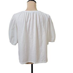 Old Navy Size M White Puff-Sleeve Slub-Knit Top.Excellent, Like New Condition. Front Button Neck with Keyhole. Short Puff Sleeves with Elasticized Cuffs. Please refer to measurements in photos to ensure proper fit. Shown on size 4-6 mannequin.