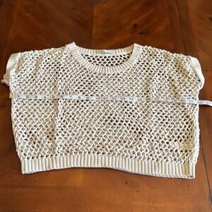 Old Navy Size S Cream Cotton Open Weave Cropped Pullover Sweater