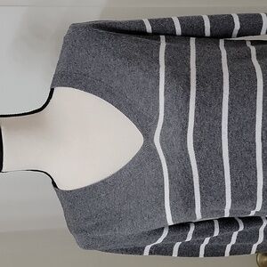Old Navy Size S Gray with White Stripe V Neck Long Sleeve Knit Lightweight Top. Almost a Sweater. Super Comfortable. Long with Long Sleeves and V Neck. No Holes, Rips, Stains or Snags. Please refer to measurements in photos to ensure proper fit. Shown on Size 6 mannequin.