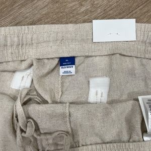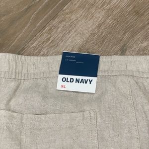 Old Navy linen shorts. Size XL. khaki/tan color. Pull on elastic waist. Brand new, never worn, NWT. Non smoking house. I changed sizes and never had the chance to wear them and it’s too late to return them.