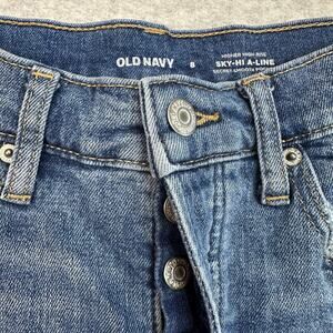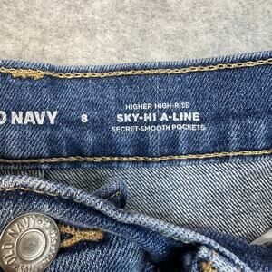 Old Navy Sky Hi A-Line Cut-Off Short WMNS 8 Blue High Rise Distressed Button Fly
