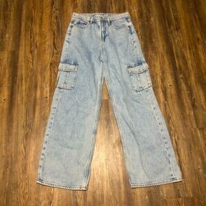 Old Navy Sky Hi Wide Leg Jeans Women's 0 Drapey Cargo Denim in Derby Wash