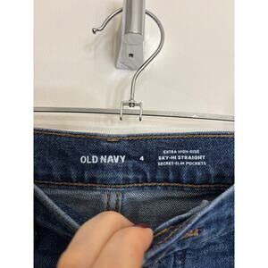 Old Navy Sky-Hi Straight Jeans Womens 4 Blue Extra High Rise Button Fly