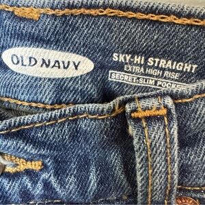 Old Navy Sky-Hi Straight Ripped Extra High Rise Jeans Raw Hem Women’s 12 (31x27)