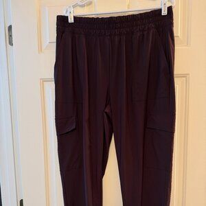Super comfortable athleisure pants- I think they run a bit on the large side.  Boxwood is sort of a deep burgundy color - really pretty and great for fall.