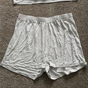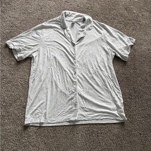 Old navy, size medium tall. Sunday sleep set - short sleeve collared button up top and shorts for bottoms. Gray color with white accents. Great condition, only worn a few times. Smoke free home, not a pet free home.