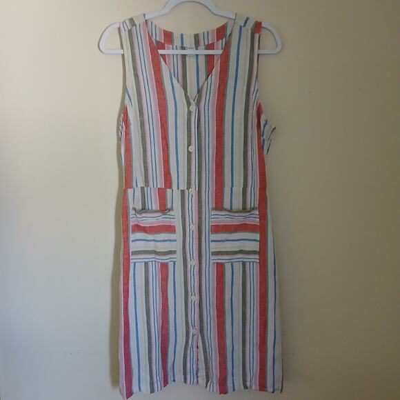 This Old Navy Women's Sleeveless Striped Button Up Dress in size Large is a versatile and stylish option for any casual or travel outfit.