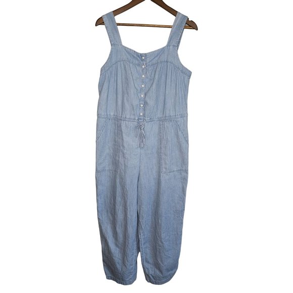 Old Navy Sleeveless Tie Waist Utility Jean Jumpsuit Size L Light Blue Cotton