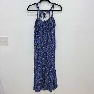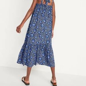 Old Navy Sleeveless Tie-Back Cutout Maxi Swing Dress Sz XL Block blue print