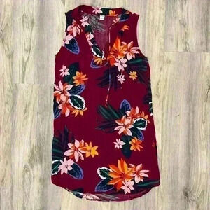 Old Navy Sleeveless Tie-Neck Mini Shift Dress Hawaiian Floral Viscose Size XS